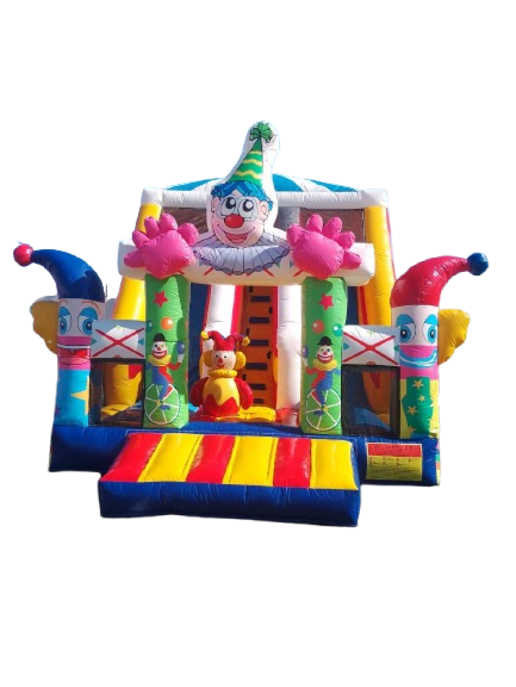 اجعل المرح مضاعفًا مع متاهة المهرج التي تجمع بين القفز و التزحلق في تصميم مبتكر ومثير! تحتوي على مسارين ممتعين يتيحان للأطفال التنافس والاستمتاع بالحركة بحرية، بالإضافة إلى نطيطة آمنة تمنحهم تجربة قفز ممتعة.